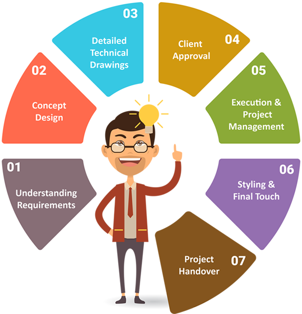 We Develop A Master Plan That Relates To Your Long Term Objectives For Your Space. It Consists Of Preparing Presentation Which Includes Furniture, Lighting, Fabric & Colour Scheme Selection As Well As Other Elements Like Electrical, Plumbing & Designs.